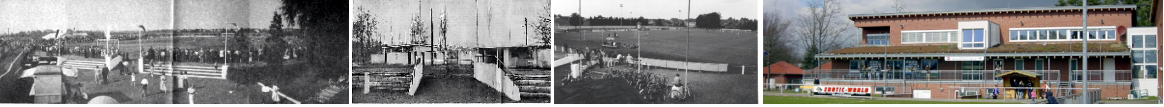Die Sportplätze von 1910 bis 2011. Bilder von links: 40jähriges Jubiläum 1949 hinter Schüttmann, die 50- und 60ziger Jahre,
