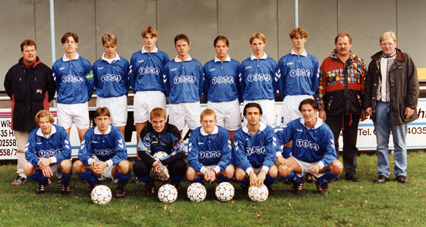 Sth.v.l.: Jugendleiter Heinz Hörsken, Trainer Hannes Latowski, Alexander